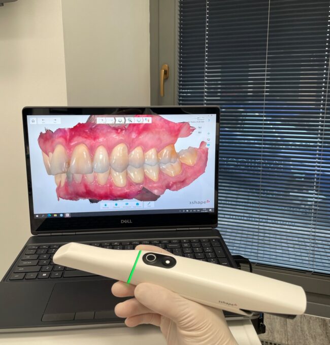 Wir haben einen neuen Assistenten für digitales Abformen. Nach 3 Jahren Einsatz des TRIOS 3 Scanners wechseln wir auf die neue Generation dieser Spitzengeräte – den TRIOS 5. Jetzt noch kleiner, leichter und genauer.